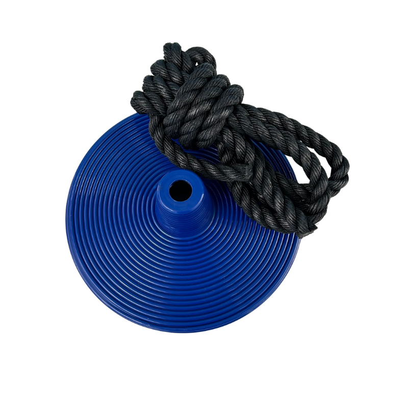 This 12″ diameter circular disc swing has a 9′ rope that can be attached to a tree.